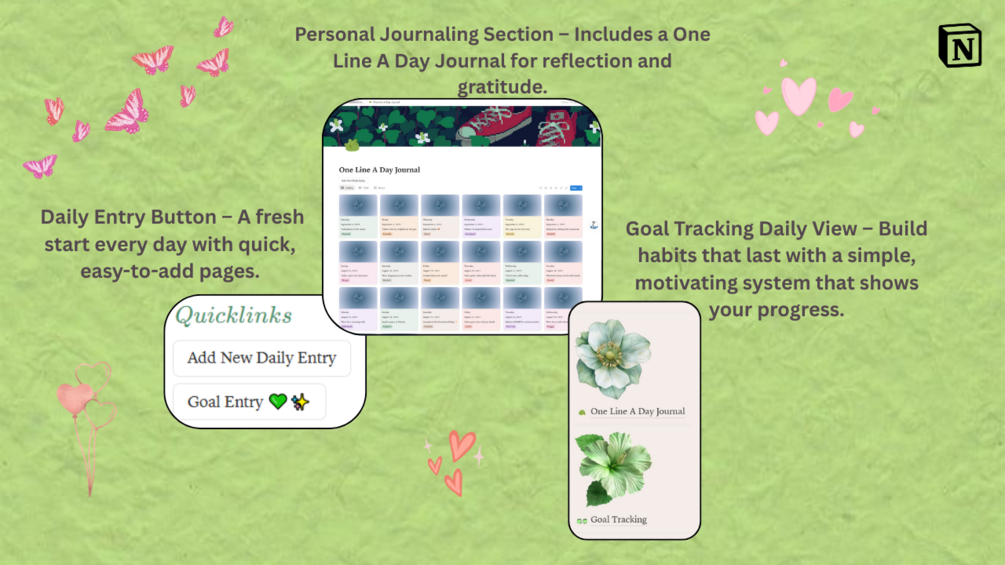 βοΈ Personal Journaling Section β Includes a One Line A Day Journal for reflection and gratitude.
