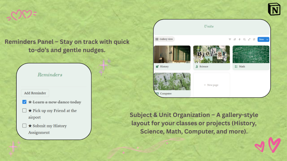 βοΈ Subject & Unit Organization β A gallery-style layout for your classes or projects (History, Science, Math, Computer, and more).